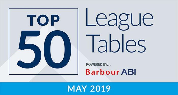 The latest edition of the Top 50 League Tables has been published by industry analysts Barbour ABI, which highlights the number of contracts awarded and the total value. This month shows that the combined value of contracts awarded to the top 50 was £2.6 billion and a total of 141 projects.
