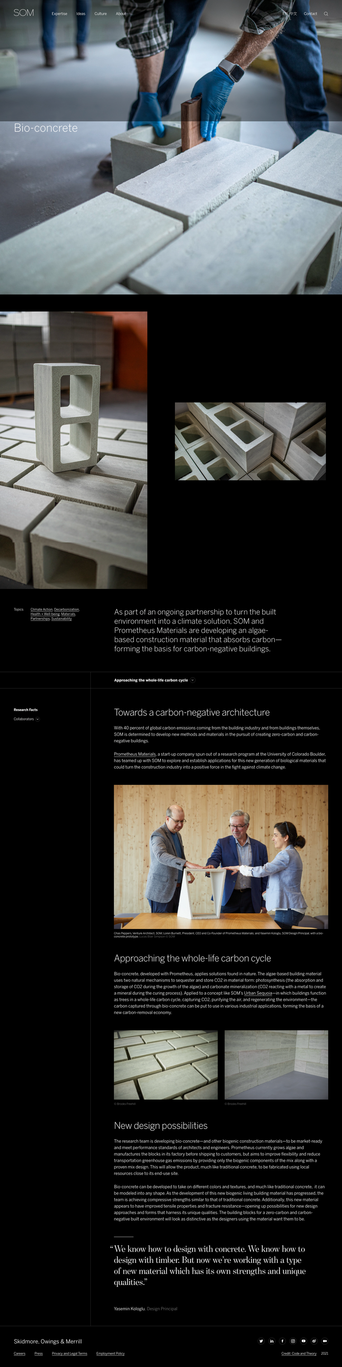 SOM and Prometheus Materials are developing an algae-based construction material that absorbs carbon
