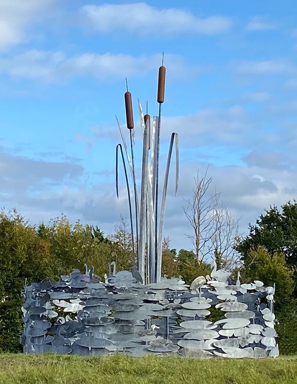 The sculpture depicts an infinity of lily pads, with a whole range of wildfowl and birds living amongst it, creating its sanctuary. Raising awareness and reminding us how beautiful nature is around us and why we need to protect it.”