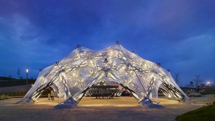 "This highly innovative construction method is far ahead of existing building regulations," said Knippers. "The weight of the pavilion's structure is many times lower than that of comparable steel or wooden structures," he continued. "This makes the assembly much easier, as there is no need for heavy means of transport, scaffolding or lifting equipment."
